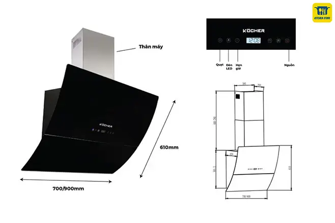 Hỏi & Đáp về Máy hút mùi áp tường Kocher K-2080E (70cm)
