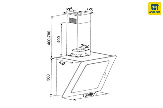 | Kiểu dáng | Máy hút mùi kính vát |