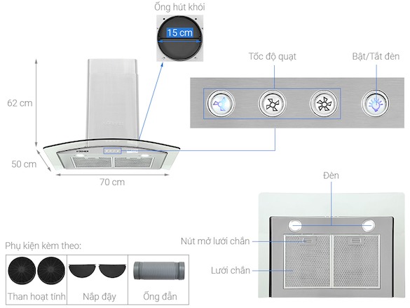 | Chế độ hút khử mùi | Khử mùi bằng than hoạt tính |