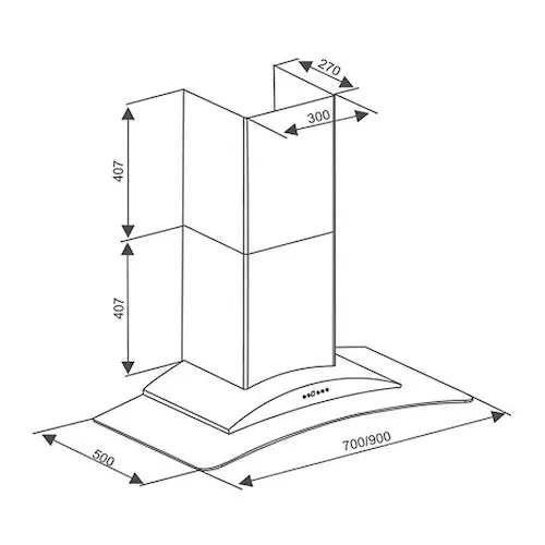 | Kiểu dáng | Máy hút mùi kính cong |
