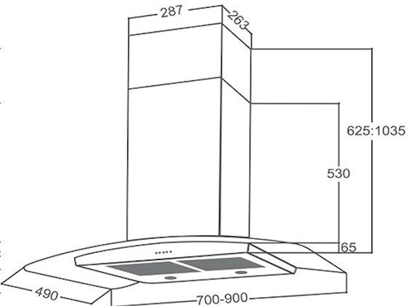 | Kiểu dáng | Máy hút mùi kính cong |