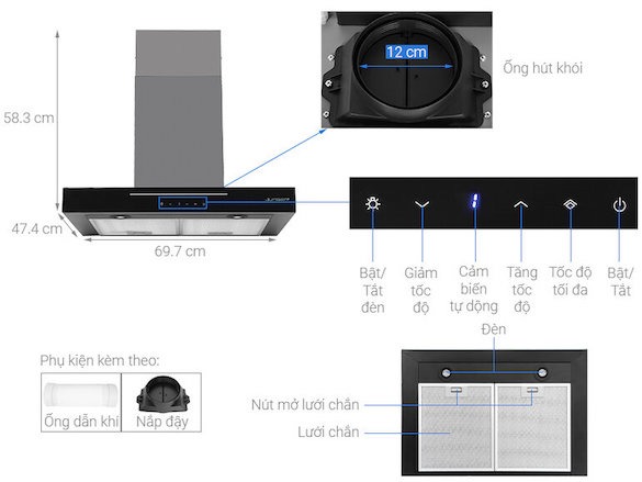 | Phân loại | Máy hút mùi áp tường |