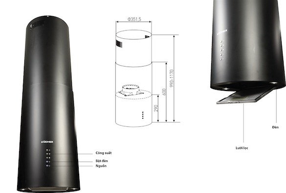 Máy hút mùi đảo dạng ống hiện đại phù hợp với không gian sang trọng, rộng rãi. Với chất liệu phủ Teflon cao cấp sẽ mang tới cho người sử dụng những trải nghiệm tuyệt vời.