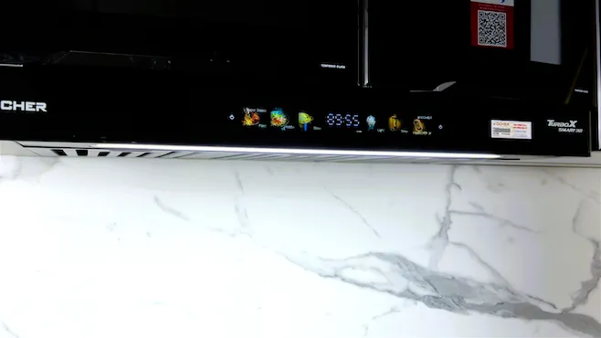 Không chỉ dừng lại ở đó, hệ thống đèn LED ánh sáng trắng được tích hợp giúp chiếu sáng bếp nấu đều và tự nhiên, không gây chói mắt – điều mà nhiều gia đình, nhất là trong không gian có ánh sáng hạn chế, rất cần thiết.
