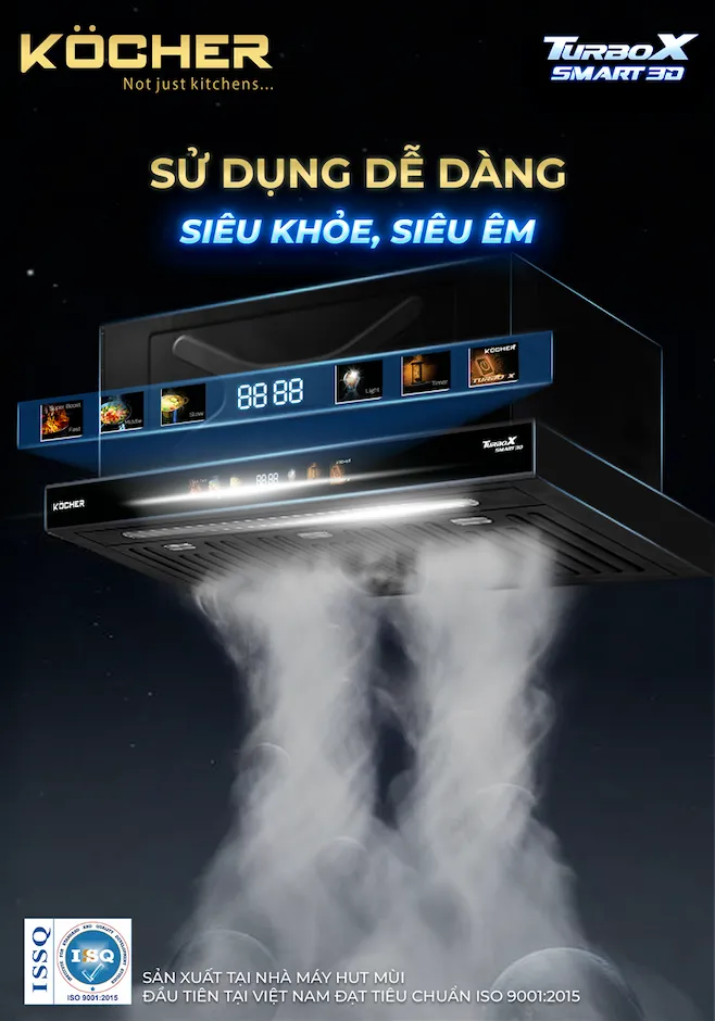Khi máy hút mùi truyền thống không còn đáp ứng được kỳ vọng – thiết kế cồng kềnh, độ ồn cao và hiệu suất hút mùi hạn chế – Máy hút mùi TURBO SMART 3D của Hãng Köcher xuất hiện như một giải pháp đột phá mới trong căn bếp gia đình. Được xem là thế hệ nâng cấp tiếp theo của dòng sản phẩm TURBO X, sản phẩm này hứa hẹn mang đến hiệu quả hút mùi vượt trội với trải nghiệm sử dụng thông minh và hiện đại.