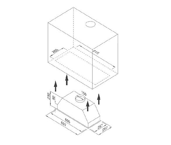 - Kích thước: W697 x D287 x H250mm