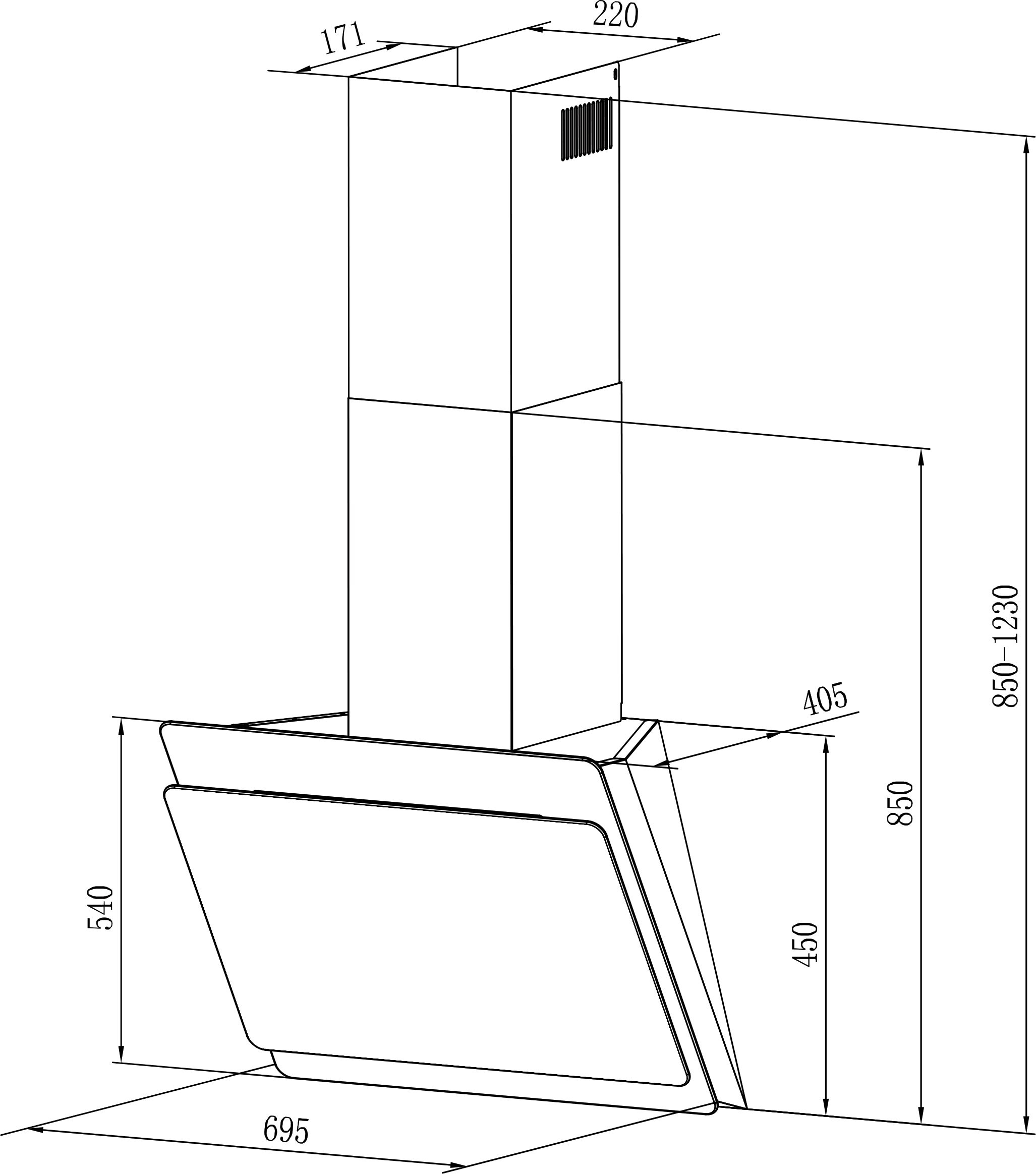| Kích thước sản phẩm | 695R x 405S - 850 - 1230mm |