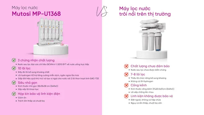 Hỏi & Đáp về Máy lọc nước để gầm 10 lõi Mutosi MP-U1368