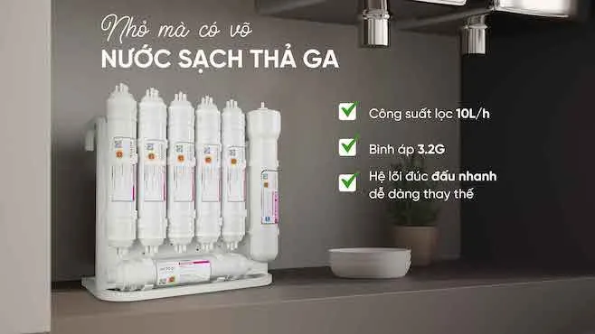 Hệ thống 6 lõi lọc chức năng giúp bù khoáng, diệt khuẩn