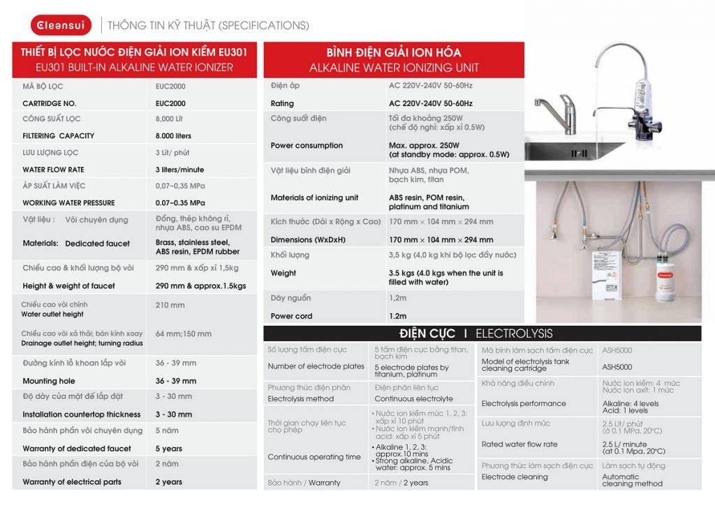 Hỏi & Đáp về Máy lọc nước tạo Ion kiềm MMitsubishi Cleansui EU301