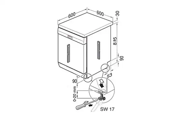 Máy rửa bát dạng thùng có kết cấu vững chắc, lắp đặt gọn gàng, chắc chắn trên mọi mặt sàn. Sản phẩm còn có thể lắp vào hộc tủ dưới kệ bếp (không lắp âm vào tường) tiện lợi.