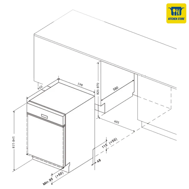 - Kích thước âm tủ: 605R x 605S x 825 – 855C mm
