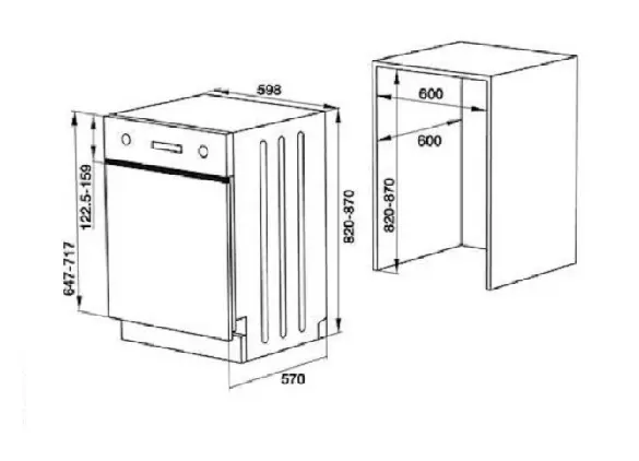 | Kích thước lắp đặt | 600R x 600S x 820-870C mm |