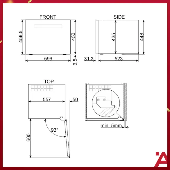 | Kích thước sản phẩm | 596R x C448 x S456 mm |