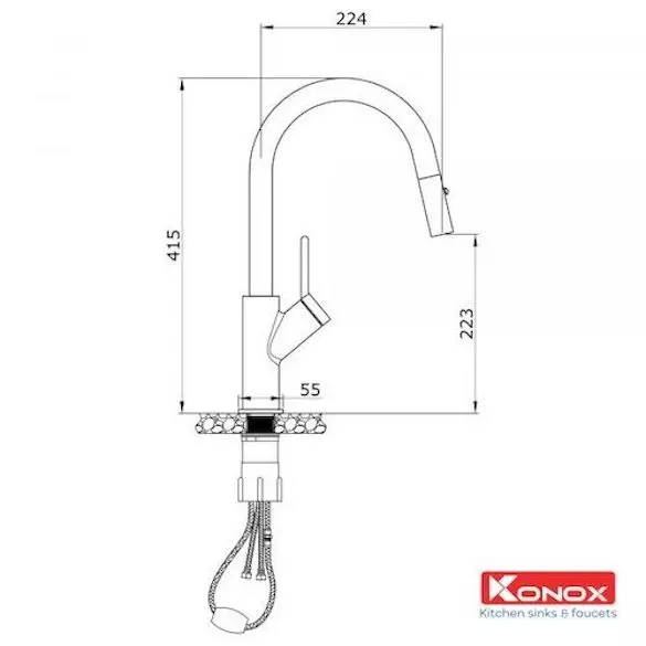Vòi rửa bát rút dây Konox Ponte Chrome
